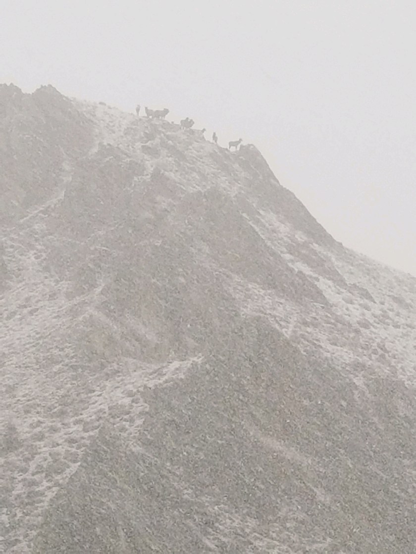 In the morning it was soo beautiful outside. It was snowing like crazy. Across from our cabin there was a river & mountains. As we looked clear up at the top, there was a herd of Elk , just standing on the edge of the cliff looking out over the valley below. It was a magnificent sight.